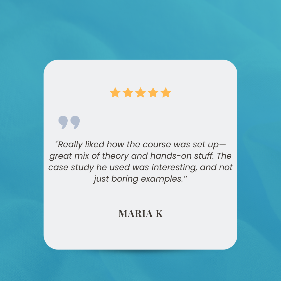 In this first version, the course is comprised of 5 modules. I will be building each module using a case study that I will share in the video lessons.